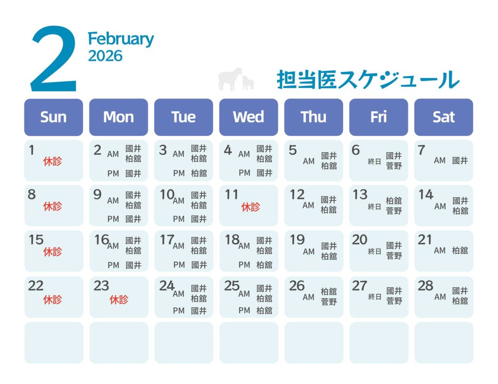 ※2 第二金曜日・第四木曜日は非常勤女性医師、柏舘、菅野の外来診療となります。國井院長は病棟診察のみで外来診療は行いませんのでご了承ください。